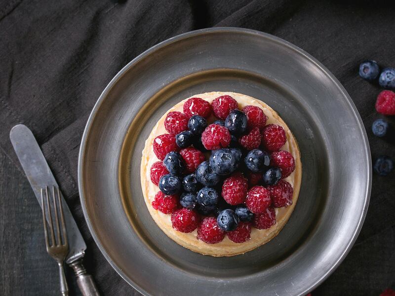 To assemble, cool crust on a wire rack. Spread crust with cheesecake topping, a layer of fresh berries, a cut-out heart and a sprinkling of white sparkling sugar.