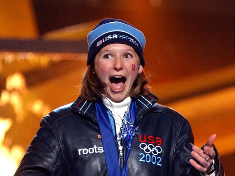 At 21, Tristan was a first-time Olympian in a first-time event when the 2002 Games rolled around. She’d moved to Utah from New Mexico when she was 9 and discovered skeleton racing as a teenager. In a snowstorm on Feb. 20, 2002, she made history when she became the first Olympic women’s skeleton winner ever. As she celebrated at the finish line, she took off her helmet and showed the world her hair streaked a patriotic red, white and blue.