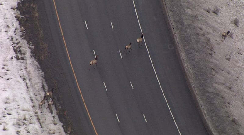Over the last few days, wildlife officials were tracking elk that had trapped themselves and bedded down in the median between the eastbound and westbound lanes.