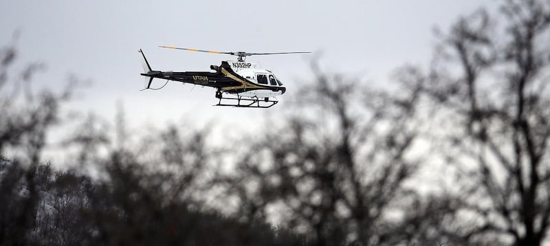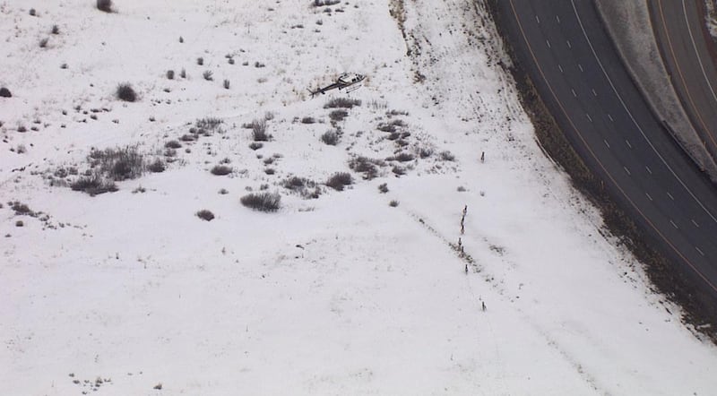 At 11 a.m., the highway patrol stopped traffic to allow a state helicopter to swoop in, sound a siren and chase the elk off the median. The maneuver moved six of the eight elk off of the median, plus a moose.