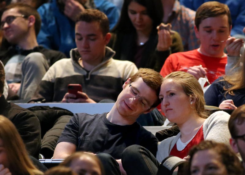 Carroll and her fiancé watched the devotional on a live feed in the Varsity Theater at the Wilkinson Student Center to avoid the rain, but he stood with others when Elder Cook asked students born third or later in their families to do so.