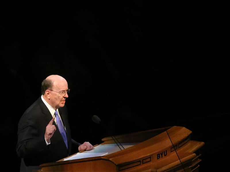 "The truth is, not only do the enemies of Father’s plan attempt to undermine the doctrine and principles of the plan, but they also attempt to mischaracterize the blessings that flow from the plan," Elder Cook told a large audience in the Marriott Center on BYU's campus. "Their basic effort is to make that which is good, righteous and joyful, seem utterly miserable."