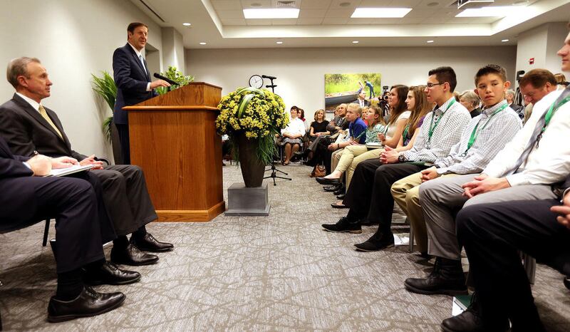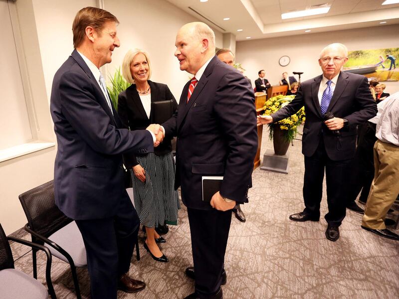 Elder Dale G. Renlund of the church’s Quorum of the Twelve Apostles spoke to the assembled group, saying the new attraction is “the first major change in the interior appearance of the Family History Library,” which was dedicated in October 1985.