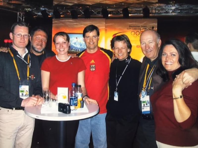 "As one of 18 German-speaking volunteer assistants to the German National Olympic Committee (NOC), my Olympic experience was even more eventful than I had hoped and it continues for several of my fellow NOC assistants and me as we reunite every mid-December for a traditional German Christmas feast at the home of our group's matriarch, Trudi Levin of Cedar Hills. One year she asked us to wear our volunteer uniforms and then surprised us after dinner with a Skype visit from our German NOC supervisor, Georg Kemper of Frankfurt, who also wore his 2002 uniform from the previous decade. Our continued friendship with him and with each other symbolizes the legacy of the 2002 Olympic Games.