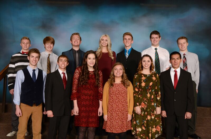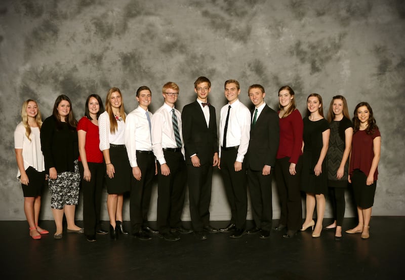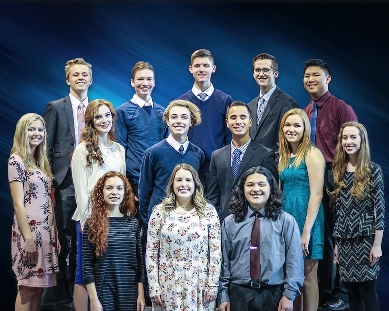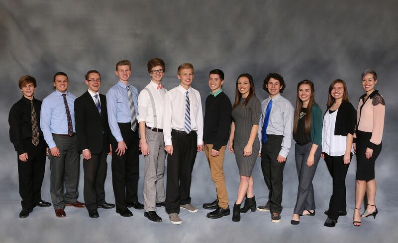 Northridge High School: From left: Bailey King, Vocal Performance; Tanner McClune, Business & Marketing; Jarom Christensen, Instrumental Music; Christian Schweitzer, English; Alec Burnett, Visual Arts; Britton Jordan, Mathematics; Jonathon Thomsen, World Languages; Elle Petersen, Dance; Jackson Bell, Speech/Theater Arts/Forensics; Hannah Elder, Family & Consumer Sciences; Kayli McLelland, Science; Ms. Lindsay Huss, adviser; Not pictured: Zachary McGarry, Social Science.