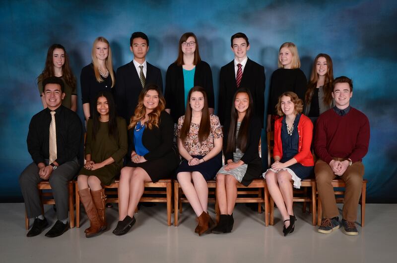 Woods Cross High School: Top row from left: Alexa Davis, World Languages; Rachel Dyreng, Family & Consumer Sciences; Jackson Jowers, Social Science; Kyle Rummens, Computer Technology; Emma Ebert, English. Middle row from left: Zach Wood, Visual Arts; Akemi Nguyen, Science; Yein Ji, Skilled and Technical Sciences Education; Sydney Kossin, Dance. Front row from left: Bailey Passey, Instrumental Music; Xingyue Wang, Mathematics; Savannah West, Business & Marketing; Alora Hopkins, Vocal Performance; Kymberlee Anderson, Speech/Theater Arts/Forensics.