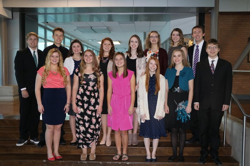 Clearfield High School: Back row from left: Benjamin Willard, Science; Mitchell Frei, Instrumental Music; Maxwell Frampton, Speech/Theatre Arts/Forensics; Keegan Musaalo, World Languages; Jadon Record, Computer Technology; Justin Tayag, Skilled and Technical Sciences Education. Middle row (left to right): Kambree Swanson, Family and Consumer Sciences; Elisabeth Budd, Vocal Performance; Camilla Reis da Silva, English. Front row from left: Alexander Johnson, Business and Marketing; Lindsey Anderson, Mathematics; Megan Davies, Visual Arts; MaKayla Finlinson, Dance; Hagen Larsen, Social Science.