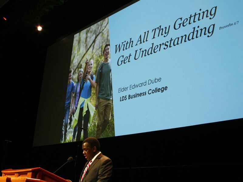 Elder Edward Dube, General Authority Seventy, delivered the LDS Business College devotional on Feb. 28, encouraging students to seek understanding and to ponder the scriptures daily.