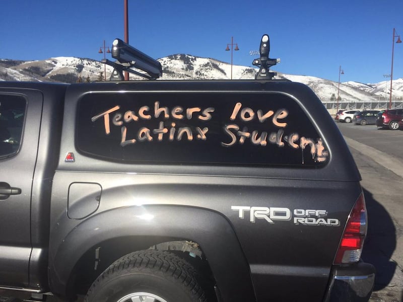 “When I walked in this morning and saw all these messages on the cars, it was so amazing. I felt welcome and safe, and I know other Latino students are feeling it,” said Nayely Velasquez, the president of Latinos in Action at Park City High School.