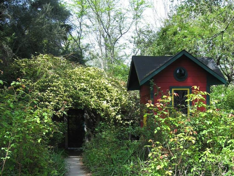 This church stands where a giant oak tree once grew. A woman’s husband spent his days at the tree contemplating the world, so she had a little chapel built on the spot when he died. (The tree also died, which is rather poetic.) Over the years, a strip mall took root and turned the area into a parking lot, but the little church lives on.