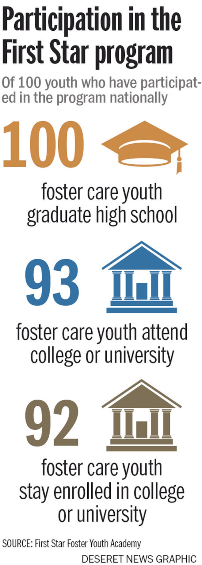 Those numbers could soon change. Utah is joining several states that partner with a local university — in this case, the University of Utah — to get older foster kids ready for college and their futures. In late April, Utah foster kids who have just completed eighth and ninth grade and who live within 40 miles of the U. will be invited to learn about and apply for a spot in the First Star Academy, a program that's turning college attendance and graduation numbers upside down across the country for foster youths who take part. Participants can choose where to get their college education when the time comes; the point is to get them to picture themselves at a university and know they belong there.