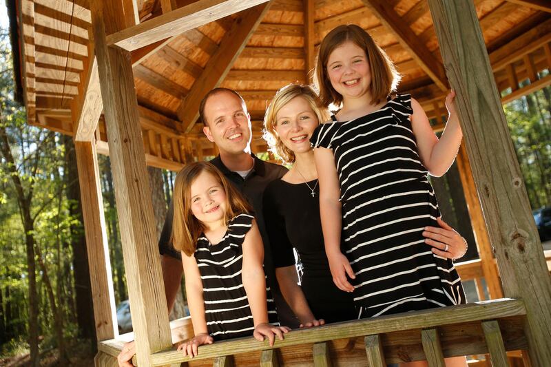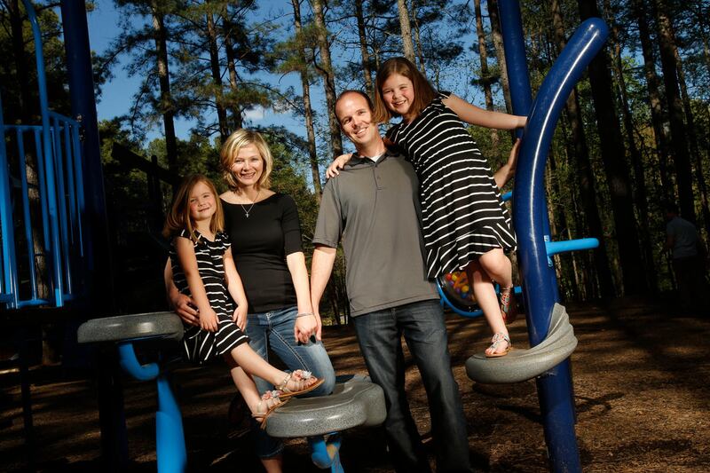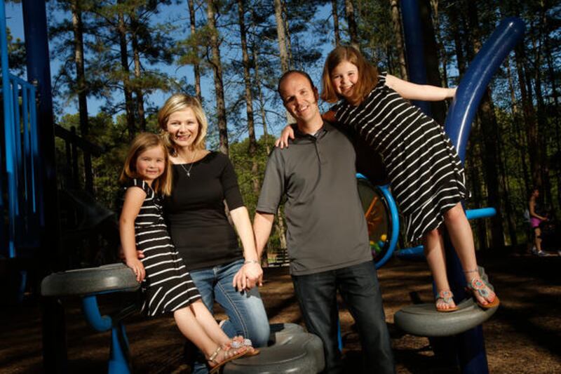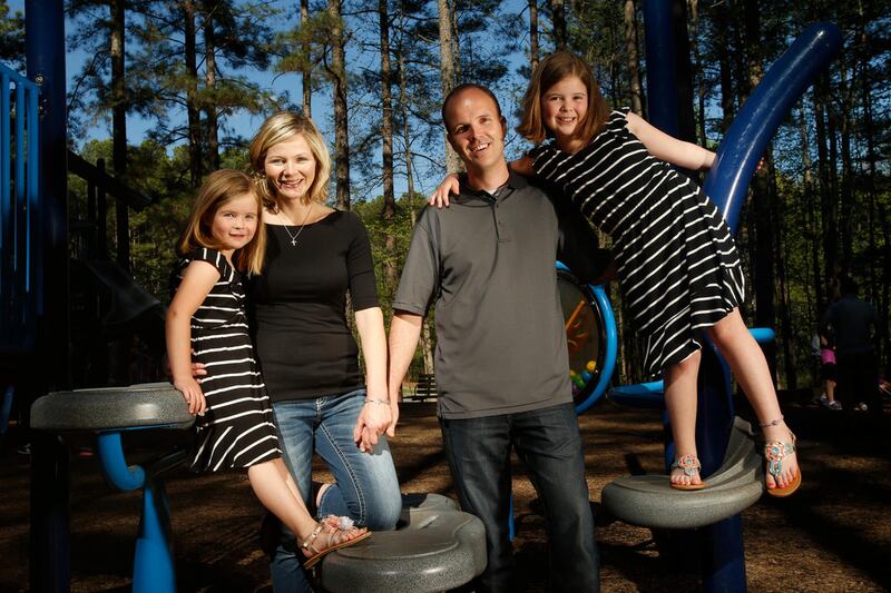 Hillary and Bryan Cole pose for a photograph with their daughters Hazel, 5, and Hannah, 8, at Jetton Park Tuesday, April 12, 2017, in Cornelius, North Carolina. | Brian Blanco, For the Deseret News