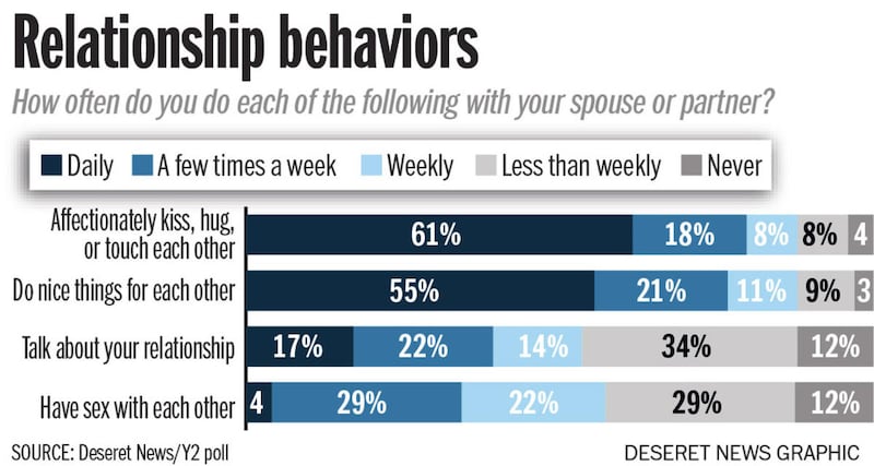 In the Deseret News survey, 17 percent of people in a committed relationship said they talk about their relationship daily; 22 percent, a few times a week; and 14 percent weekly.