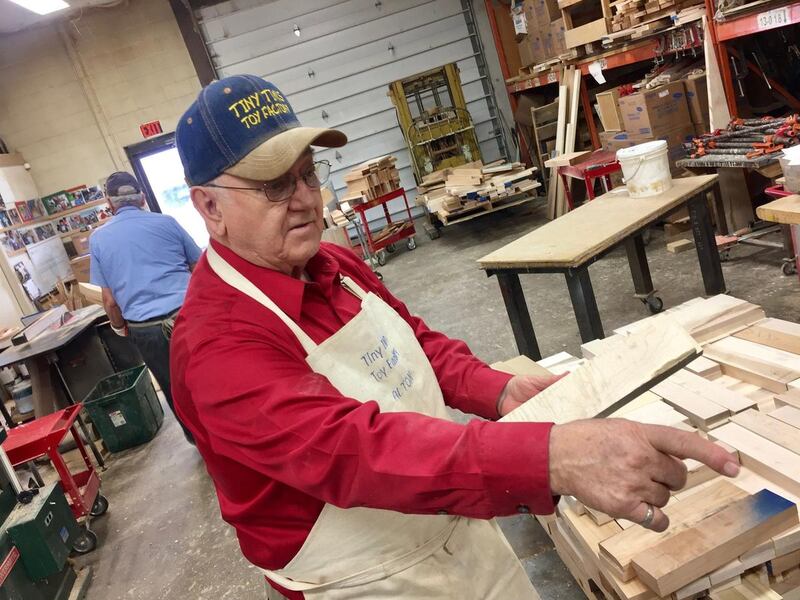 For the wood to make the toys, he made the rounds of cabinetmakers, lumberyards and hardware stores that agreed to donate their scraps.