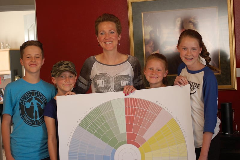 It isn't as if Janelle hasn't had plenty of opportunities right under her nose to get on the family history bandwagon. Her husband, Matt, designed a popular fan chart that was available through tree.seek.com. His concept now is one of the tools available to researchers on FamilySearch.org. It's a highly useful way to present a family pedigree that is simple to search. Many church members add a colorful fan chart to their home decor to keep the issue always before their families.