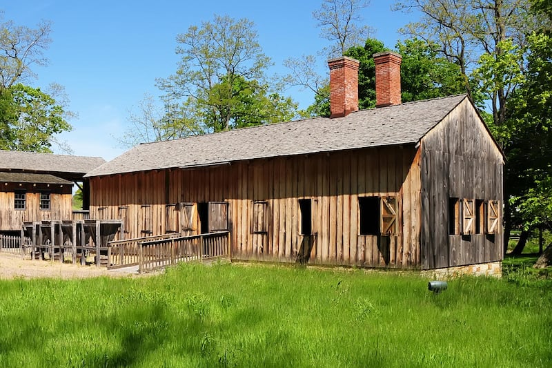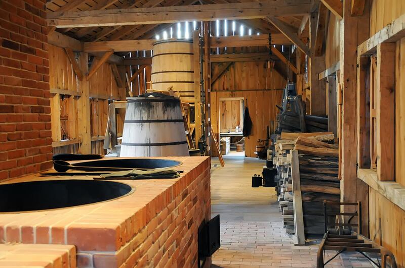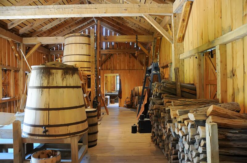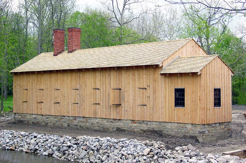 The rebuilt ashery in Kirtland, Ohio. The sawmill can be seen in the background at the far left. | Kenneth Mays