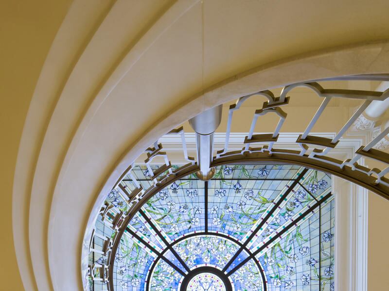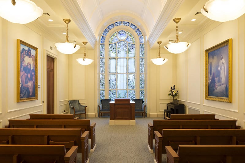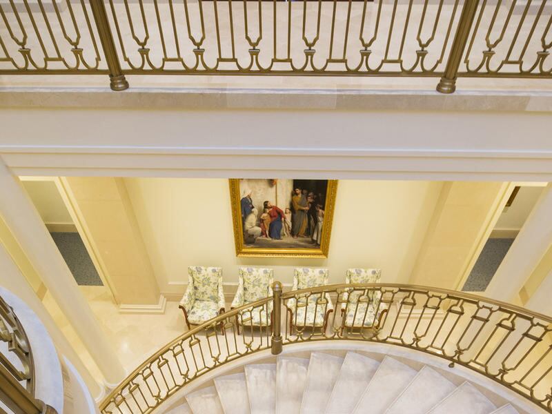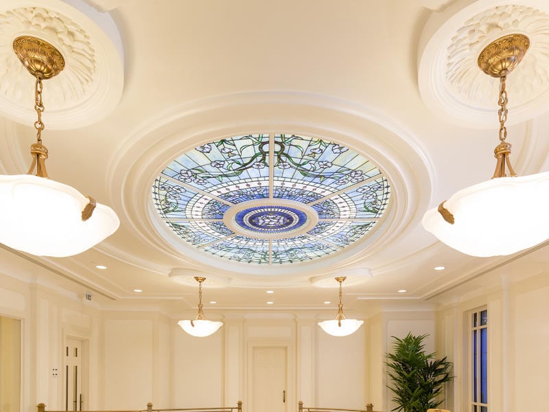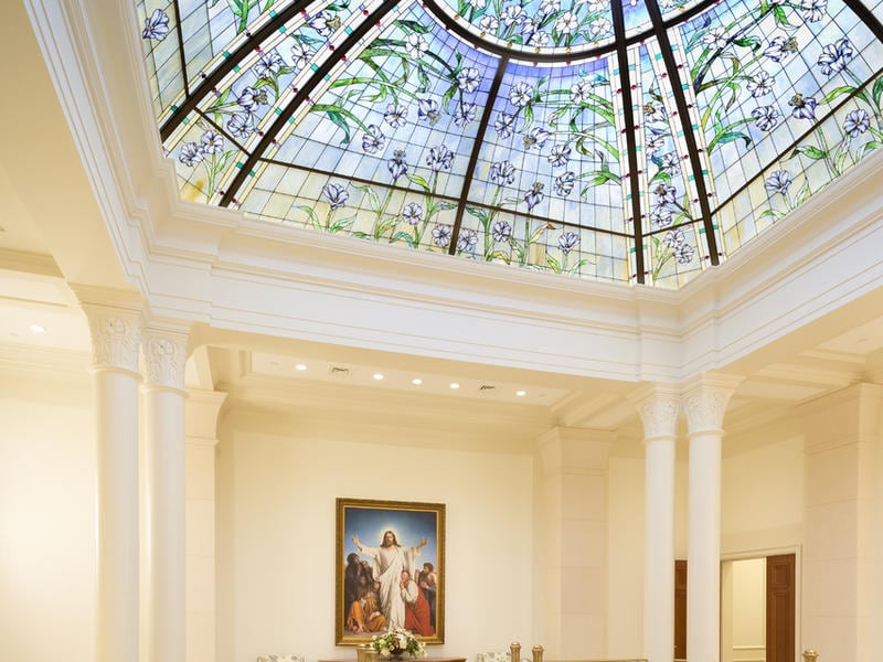 The temple features a flower-filled courtyard with a Bertel Thorvaldsen replica Christus statue as its focal point. The grounds will be a place of sanctuary for the largely residential neighborhood, while stained glass and windows etched with lilies will greet those LDS members worthy to enter and do the ordinance work inside this holy place.