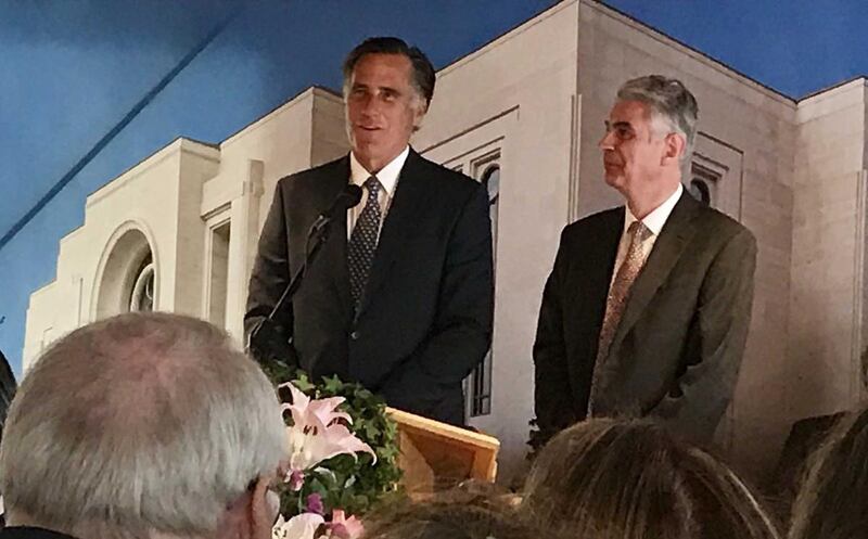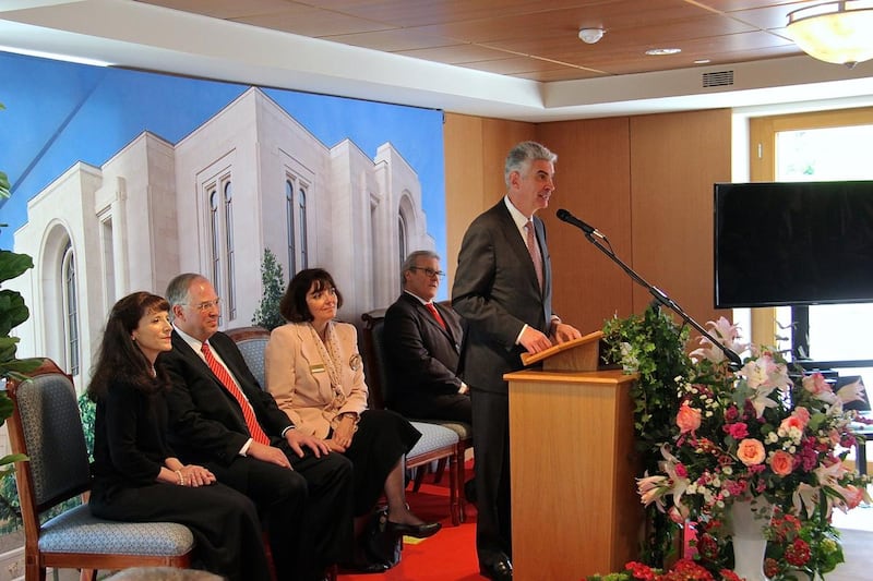 He was one of several dignitaries that also included the mayors of Versailles and Saint-Cyr-l'Ecole; Elder Neil L. Andersen of the Quorum of the Twelve Apostles and his wife, Kathy; Bishop Gérald Caussé of the Presiding Bishopric and his wife, Valérie; and former GOP presidential candidate Mitt Romney, joined by his wife, Ann.