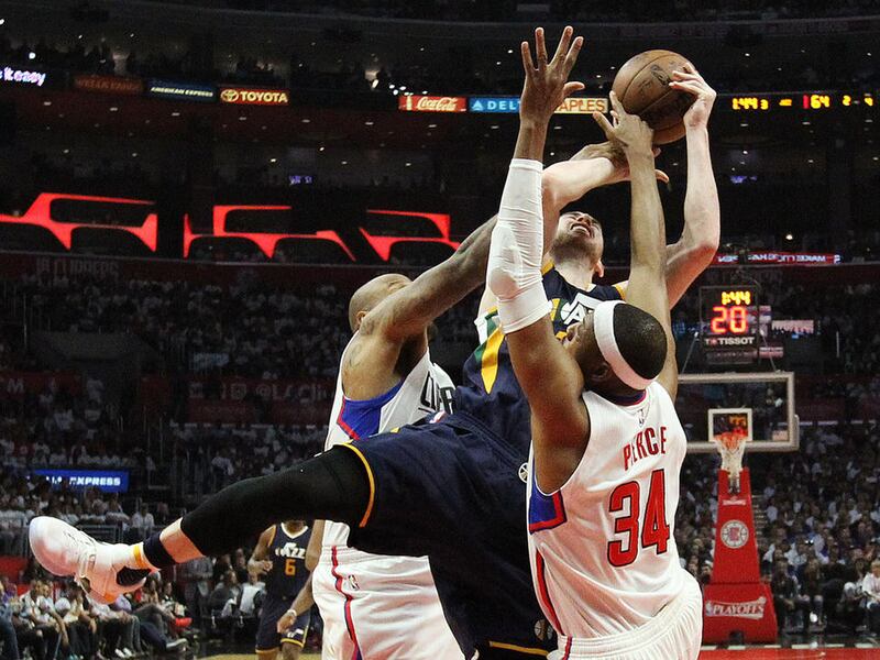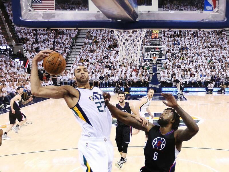 We also caught Gordon Hayward taking the court before Game 7 and Derrick Favors making a tough rebound against Clippers center DeAndre Jordan.