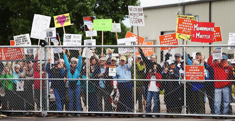 Zinke said he'd met with hundreds of monument supporters, shook hands and listened to opposing viewpoints from people he praised for their passion. Looking at Wednesday's raucous crowd chanting in his direction, Zinke was nonplussed.