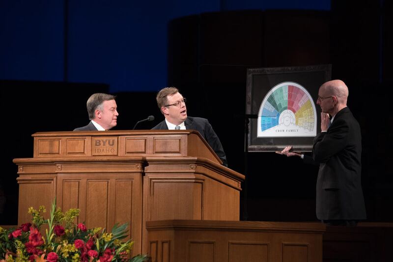 "President Crow is a great friend of the church, and of people of all faiths," Eyring said as he introduced Crow at Tuesday's devotional. "He's also a great supporter of BYU-Idaho. He has inspired confidence in our innovations, both on campus and online."