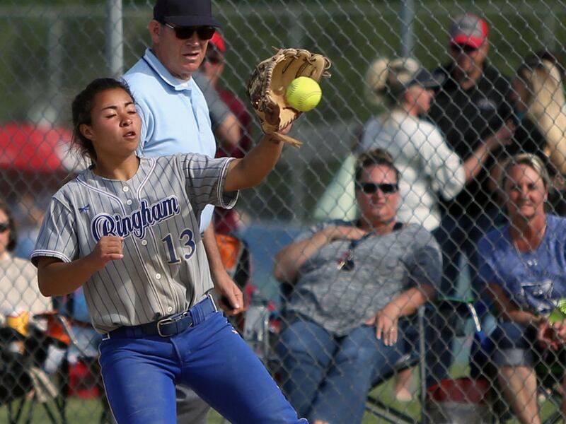 Bingham switched pitchers, but Karly Wightman was greeted by a hard shot off her shin from Masina's bat which caromed all the way to the edge of the left-field grass to bring in two more runs.