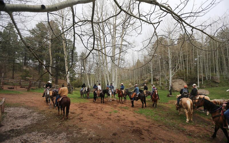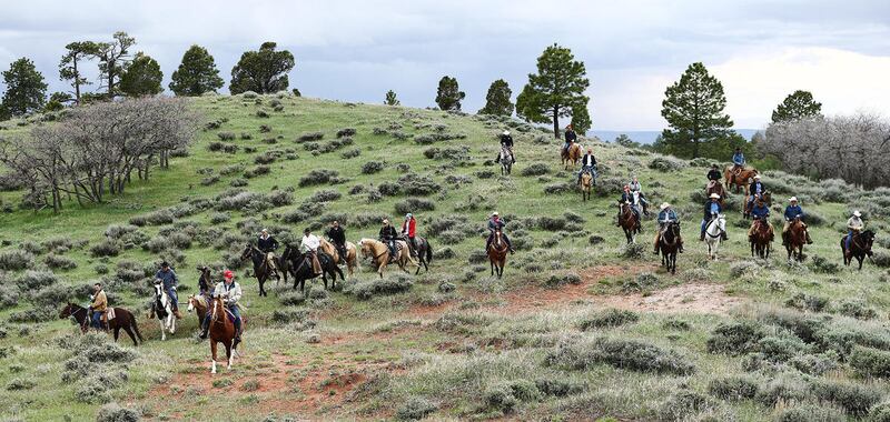 While the skies cleared, Zinke became acquainted with Payton, a tall flashy Tobiano paint mare who would take him through lush meadows high on south Elk Ridge Mountain, followed by a contingent of riders, including exclusive coverage by the Deseret News.
