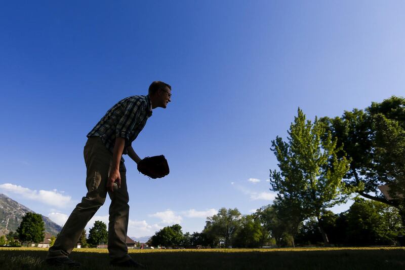 Alex Jensen instructs his daughter Olivia Jensen, 5, how to catch, at Edgemont South Stake Park in Provo on Tuesday, May 30, 2017. | Alex Goodlett, Deseret News