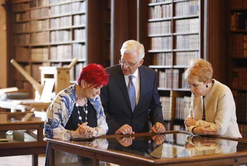"This is a special treat," he said, after he surveyed medieval books, pored over a Bible published in 1613 and learned the history of the library and the college. "It's wonderful to see the place, the environment, the ambience. It's unique in my experience."