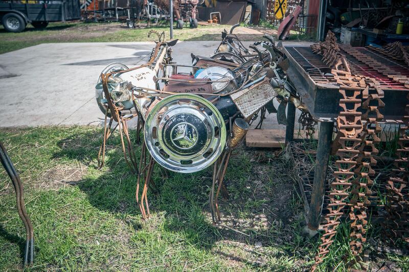 “I just started playing with different types of materials,” Pierson said. “Now, I mostly stay within boundaries, mostly create animals with old farming machine antiques and things.”