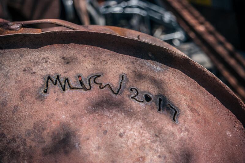 After fitting what looks like the rusty lid of a pot next to a tractor seat to complete the haunches of a horse, Pierson lifts his welding helmet to take a break. Hidden in the corner of the workshop is a slow cooker simmering with Irish corned beef — one of Pierson’s favorite recipes. It rests precariously atop a dusty copy of a Nelson Rockefeller Collection Masterpieces of Modern Art book, which serves as both a makeshift table and as a metaphor for Pierson himself: a self-described folk artist who is as at home in a scrapyard as he is wining and dining with the rich and famous in exotic locales around the world.