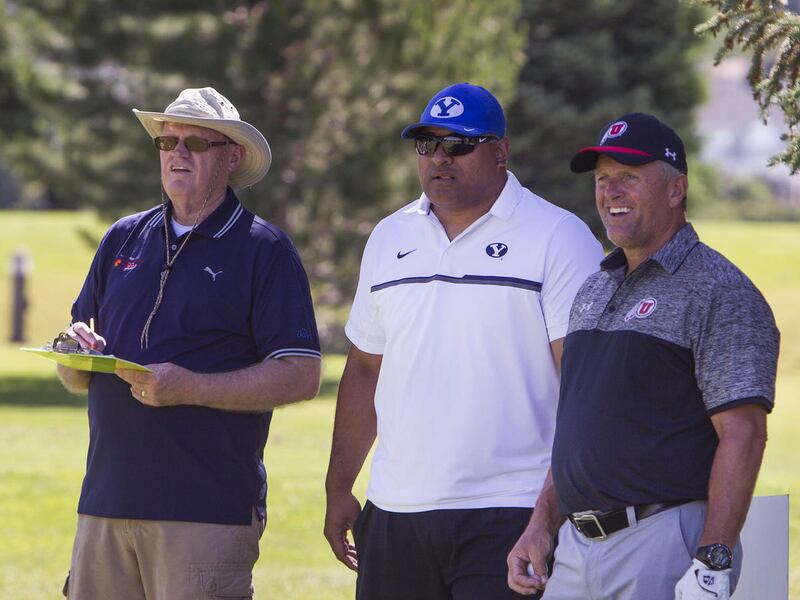 Whittingham and Sitake laid down traditional rivalry smack for golf clubs and friend time on Monday. They shared a golf cart for this 29th version of the annual event. In that private time, they no doubt had a lot of coachspeak and who wouldn’t have wanted to be a fly hanging on a water bottle in that cart?