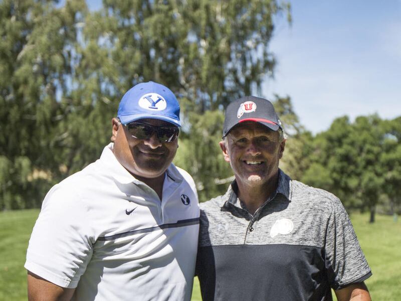 Whittingham and Sitake didn’t claim golf superiority but did make a case for having the biggest calves on the golf course at the annual Liberty Mutual Kidney Foundation of Utah-Idaho annual charity at Hidden Valley Country Club.