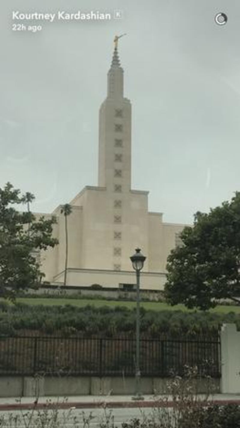Kourtney Kardashian shared a photo on Snapchat she took of a building during her morning workout. The building photographed? The Los Angeles California Temple.