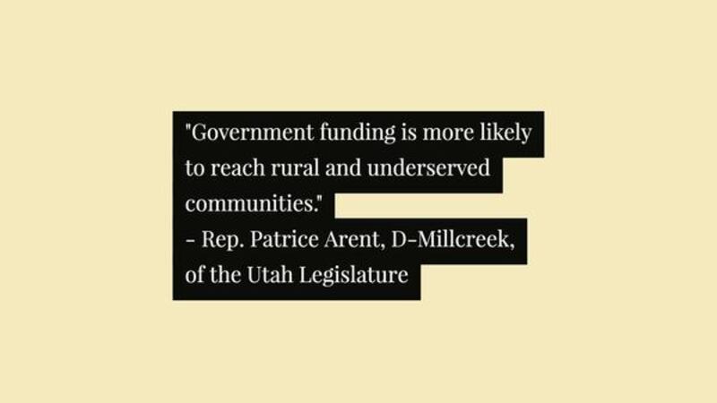 “Government funding is more likely to reach rural and underserved communities than do some of the private foundations that tend to give more to urban organizations,” said Rep. Patrice Arent, D-Millcreek, of the Utah Legislature. “My perception is government funding is more equitable.”