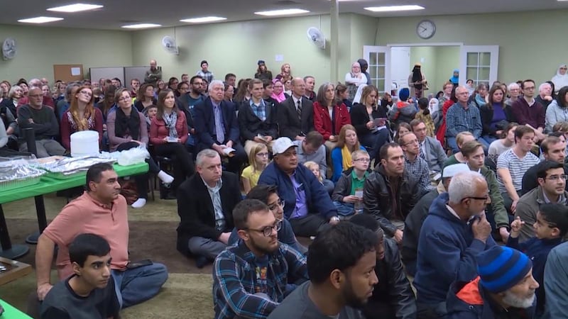 Dozens of people attend the "Meet the Muslims" event at the Utah Islamic Center in Salt Lake City, Friday, Dec. 2, 2016. After the prayer, a brief presentation on Islam was given, followed by a question-and-answer session hosted by a panel of Muslims, including Imam Shuaib Din. | Tanner Siegworth, Deseret News