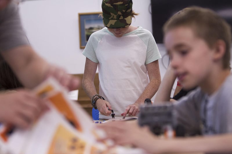 Maddie Gabbitas, 13, works to complete the construction of her Lego robot while attending the STEM summer camp at the Ruth Vine Tyler Library in Midvale, Friday, June 9, 2017. | Kelsey Brunner, Deseret News