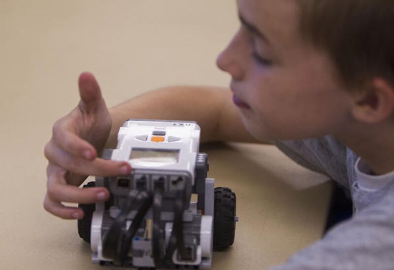Joseph Digerness, 12, examines his recently completed Lego robot while attending the STEM summer camp at the Ruth Vine Tyler Library in Midvale, Friday, June 9, 2017. | Kelsey Brunner, Deseret News