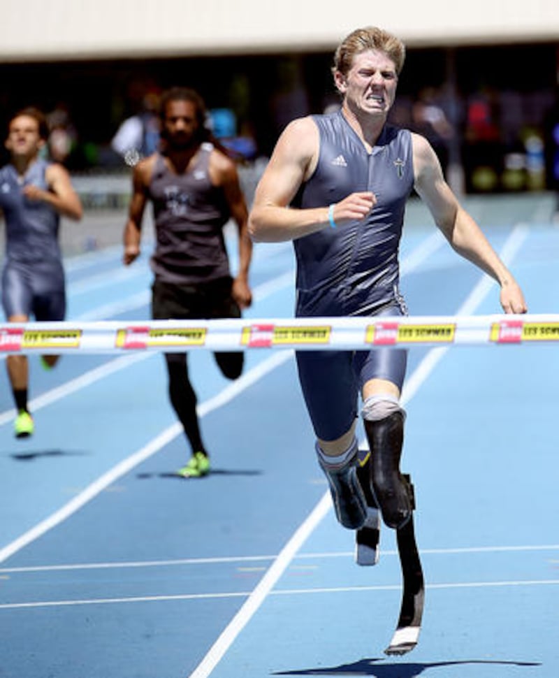 The Utah High School Activities Association received an anonymous email that was also sent to coaches around the state questioning the fairness of Woodhall’s prosthetics during the state track championships, where he set state records in the 200- and 400-meter dashes. Few responded, perhaps because of the awkwardness of questioning the participation of someone who is not only an innocent, dedicated 18-year-old honor roll student, but one who also has overcome the loss of two limbs and triumphed.