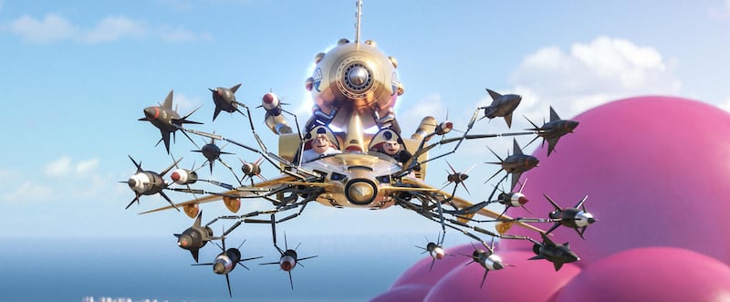 First we meet Balthazar Bratt (voiced by “South Park’s” Trey Parker), a former child actor turned super thief determined to take his revenge on Hollywood for killing his career. Bratt is a walking, breakdancing tribute to 1980s pop culture, clad in a purple jumpsuit with shoulder pads, bopping to a laundry list of obligatory ’80s hits and tossing around bad ’80s puns (“Son of a Betamax!” he curses) as he hams his way through his crimes.