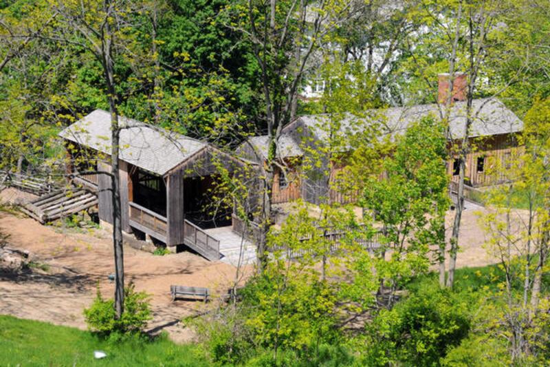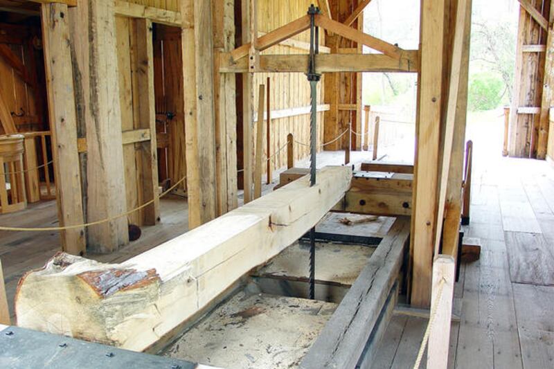 One of the reconstructed structures was a sawmill, adjacent to a rebuilt ashery, a hundred yards or so from the Newel K. Whitney Store.