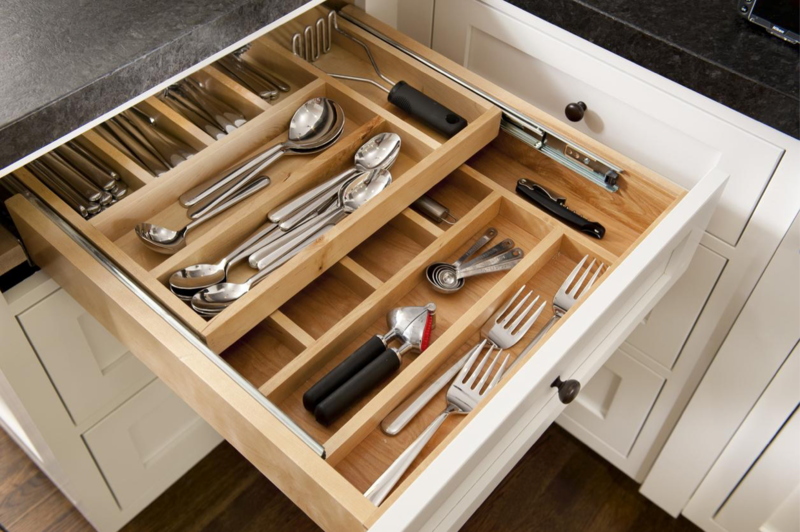 Hardwood drawer inserts adds an element of luxury to any kitchen