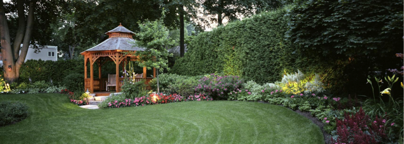You may not be able to add an entire gazebo, but flowering color and yard lights are an easy update