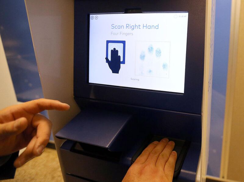 New users are required to scan in a government-issued ID, like a driver's license or passport, answer a few verification questions, then when the user's identity has been confirmed, the pod interface guides users through fingerprint and iris image scanning. CLEAR says the registration process typically takes three to five minutes to complete and can also be started at home, via the CLEAR website.