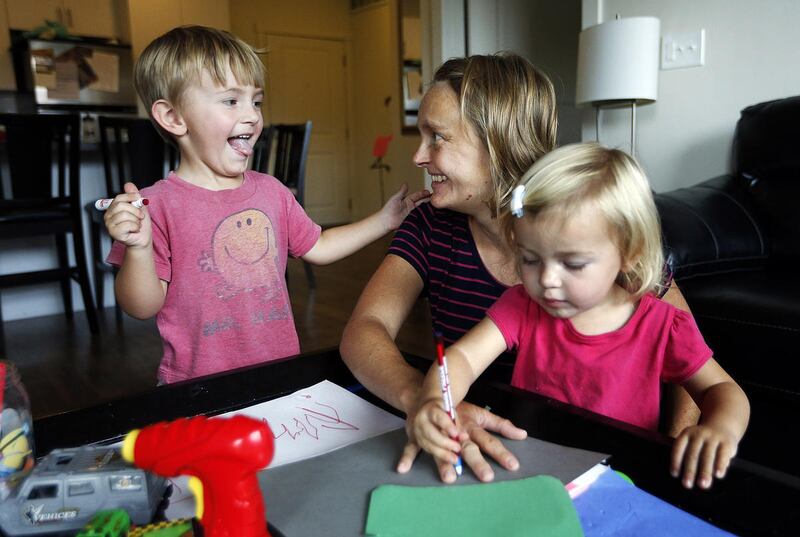 Jeanette Lukens spends time with her son Otto and daughter Adeline in Salt Lake City on Tuesday, July 11, 2017. | Ravell Call, Deseret News