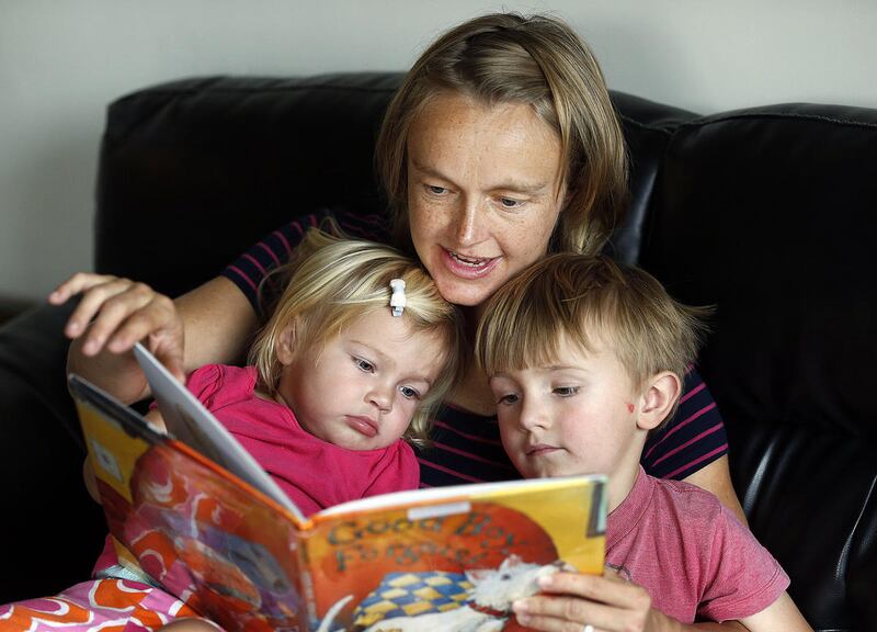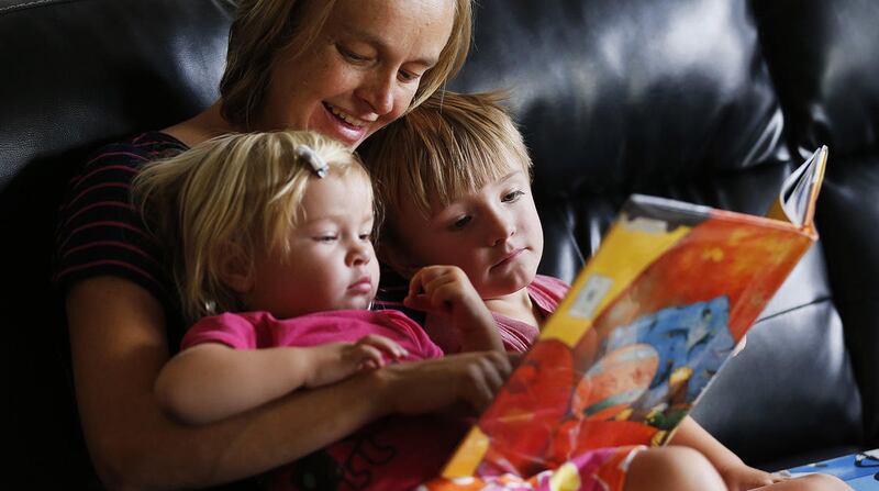 Jeanette Lukens reads a book with her son Otto and daughter Adeline in Salt Lake City on Tuesday, July 11, 2017.| Ravell Call, Deseret News