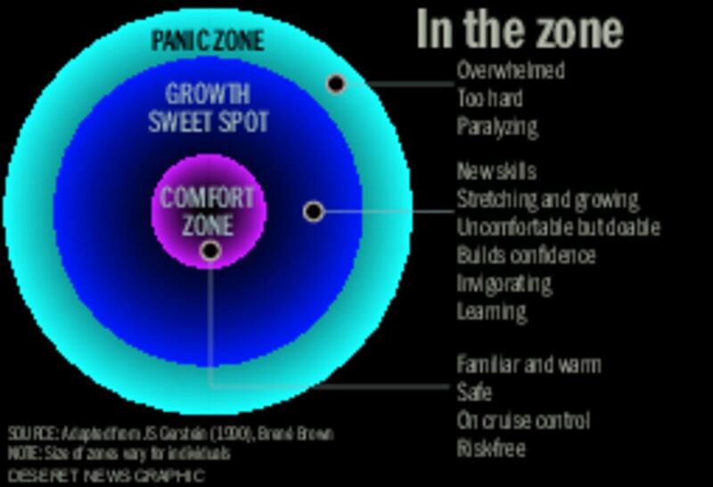 Leaving a comfort zone is both daunting and exciting, but people need to venture out to grow, says Jordan Johnson, a marriage and family therapist in Cottonwood Heights. “Interesting research shows that fear and excitement trigger the same chemical response. It’s just our own perceptions of the experience that differ.”