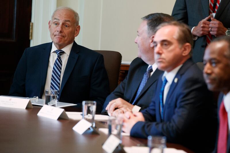 After swearing in Kelly, Trump convened his full Cabinet, including Attorney General Jeff Sessions, the target of recent public rebukes from the president. Sanders later brushed aside talk of yet another abrupt shuffle: the idea of Sessions leaving the Justice Department to replace Kelly at Homeland Security. The president has no such plans, she said.