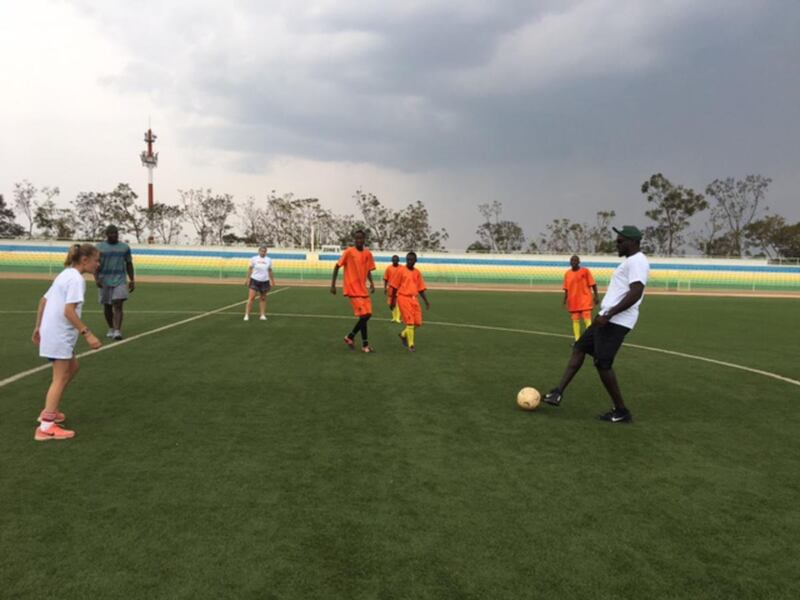 “With kids, what are you going to do?” she said at the end of her first day of a weeklong stay in Rwanda. “Sit them down in a classroom and just drill them with this stuff? I think this puts it into perspective, and some of the drills we did today as a group, the sports, it really helped to explain, maybe not genocide, but it definitely explained inequality.”