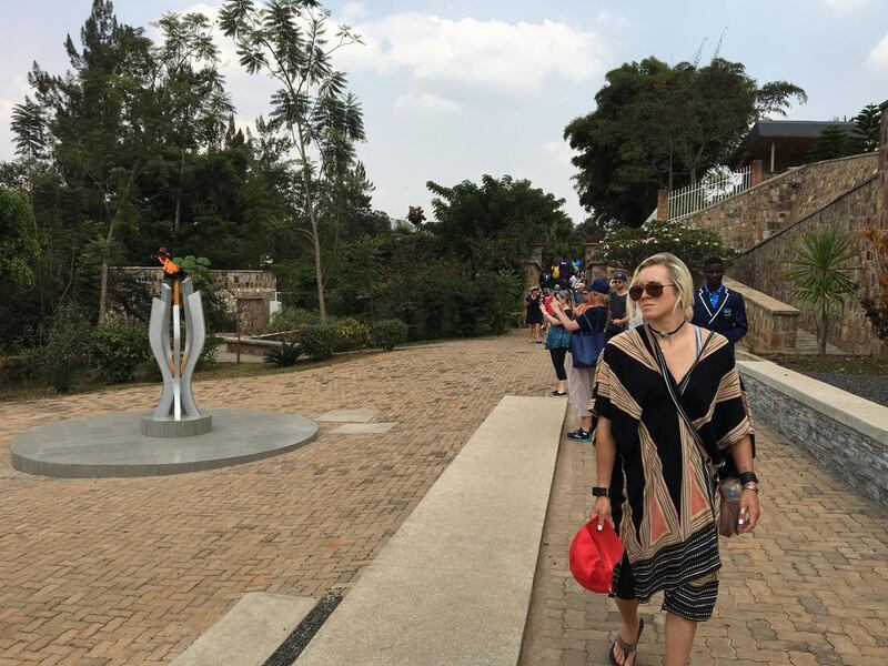 Gulini and the others, including current and former Olympians and current and former NFL players, alongside Rwandan Olympians, somberly exited the memorial and made their way to a garden surrounding several large stone slabs that cover the mass grave of thousands of victims.